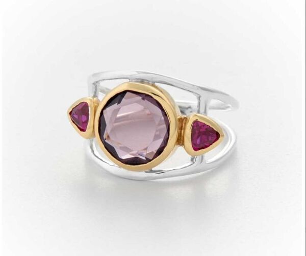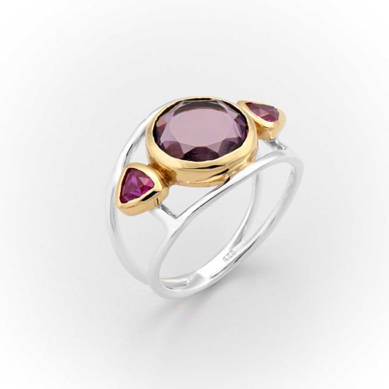 Bague Canyon en argent 925 et laiton décorée d'un grand verre améthyste