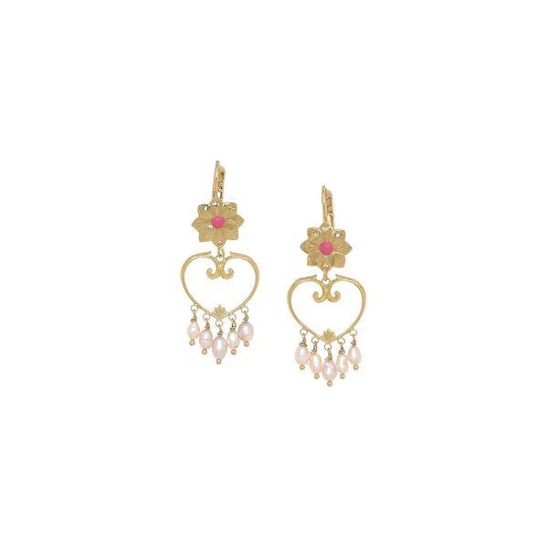 Crochets français fleuris + pendentifs en forme de cœur 5,2 cm 5,9 g Laiton, résine colorée, perle