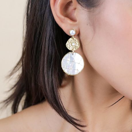 MATIERES Laiton, perle, Swarovski, Nacre blanche Longueur 5.5 cm