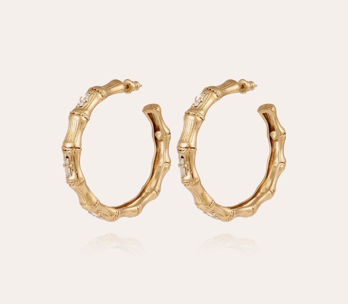 Boucles d'oreilles Gas Créoles Bambou strass dorées