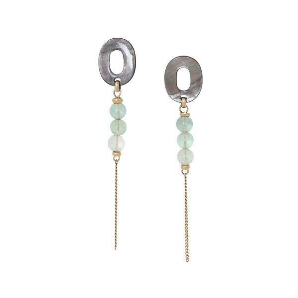 Boucles d'oreilles pendantes à tige avec chaîne 8 cm 8,15 g Laiton, fluorite arc-en-ciel, nacre de Palawan