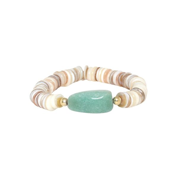 Bracelet extensible en aventurine et coquillage 18 cm 26,5 g Laiton, aventurine verte, coquillage rose 13--44506